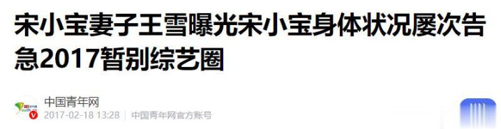 中国青年网——宋小宝妻子王雪曝光宋小宝身体状况屡次告急2017暂别综艺圈