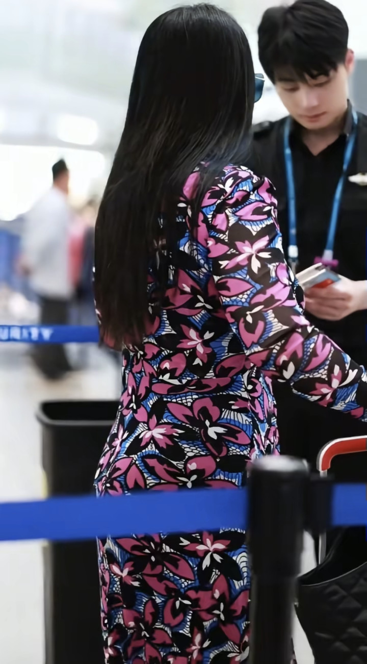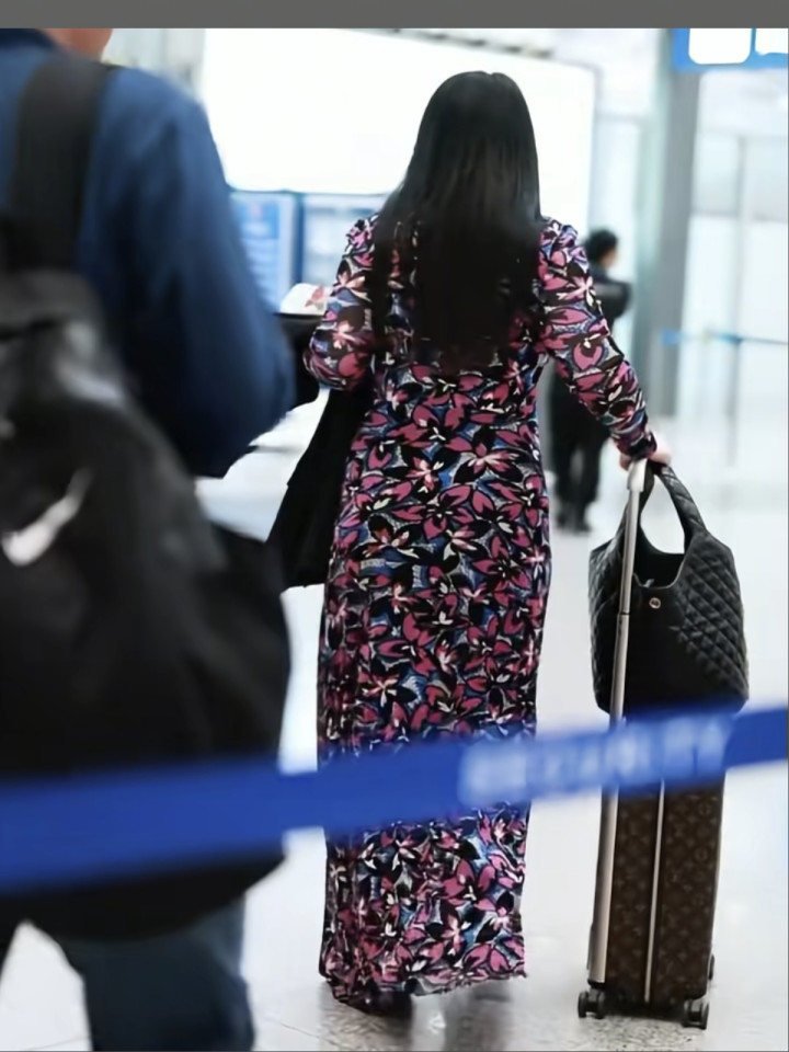 李湘现身机场, 一席碎花长裙越来越富态了, 网友猜测她出国看女儿