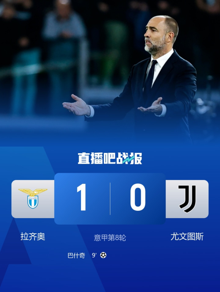 意甲第8轮,尤文图斯客场0-1不敌拉齐奥,各项赛事8场不胜。