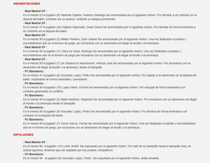 皇萨赛后裁判报告:卢宁红牌,维尼修斯、费尔明等六人黄牌