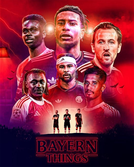 直播吧11月25日讯北京时间周三凌晨的欧冠联赛阶段第5轮比赛,拜仁将前往酋长球场挑战阿森纳。目前,拜仁发布了预热海报,萨利巴、格纳布里、埃泽、凯恩、奥利塞以及萨卡悉数出镜。值得一提的是,拜仁制作的海报联动了大热美剧《怪奇物语》。
