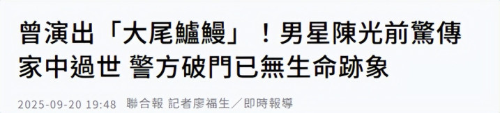 报道指出,友人因为联系不上陈光前焦急报警,警方在9月19日上门调查,发现大门反锁,破门而入后确认陈光前已经死亡,现场初步勘查无外力介入迹象,陈光前倒卧屋内,尸体冰冷飘着臭味,明显死亡多时,现场门窗完好,没有打斗痕迹,财产无短少,初步排除他杀,确切死因仍待检警相验厘清。