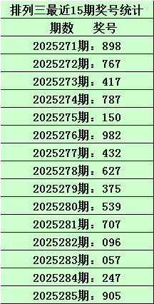 排列三第2025285期开出直选号码905,历史上该号码直选出现12次,前11次出现之后,下期开出号码为:595、906、206、547、205、013、440、820、237、342、285,其前后5期分别开出奖号:(统计见下表)